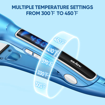 Sejoy 1.5'' Wide Flat Iron Hair Straightener, Ceramic Straightening Irons for Thick Hair, Blue